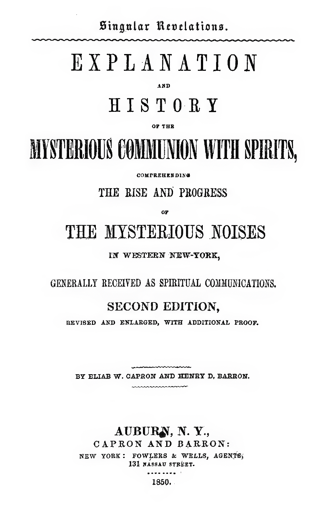 When, three months ago we entered upon the discharge of what we knew to be our duty, we were not ignorant of the result. Our duty in the matter was plain. From the time we had decided upon publishing what we knew to be facts, to the time our last page of manuscript was finished, the authors had received stronger and stronger evidence that they were but discharging their duty in publishing to the world, not what was entirely new, but something which had often been muzzled and concealed by those who dare not tell what they had seen, felt and heard, in consequence of their fears of the hisses and laughter of sceptics. A distinguished professor of a popular and imparadising science, has remarked to a citizen of the city of Auburn: "These demonstrations are not new to me. I have heard them and believed they were produced by the spirits of my departed friends for several years, but I dare not tell others of it. If I do so, I shall be branded as a lunatic, become unpopular and lose my present influence." This individual was invited to go and investigate the demonstrations in Auburn, but declined. A prejudiced and sceptical community stood ready to ask his opinion after the investigation, and if he expressed in its favor, to throw the same epithets upon him which others have received. Other men equally as learned and distinguished, have investigated and become convinced, but dare not express their convictions in public. We have in our minds editors of newspapers, who have said in the presence of a number of persons that they believed these sounds and communications were from spirits, but when they came before the pubic in their editorial capacities, dare not say more than call these demonstrations a humbug of the nineteenth century, because such was the popular opinion of a certain portion of the uppertendom. The bowing to popular opinion and prejudice in this matter, was one of the strong reasons that prompted us to issue the first edition of three thousand copies of this work. In preparing it for the press, we were cheered on by communications and encouragement from the same kind and friendly source Which are believed to be the spirits of the departed. We were aware that our work would meet with opposition, and knew from what source that opposition would come. A very worthy and Christian clergyman, and no doubt a great admirer of that law and that religion which burned in chains a Huss and a Jerome, who did not think the same thoughts that their brothers did, and which bound a Rogers to the stake, and prompted Christian Puritans to hang Quakers and whip Baptists, remarked in the presence of several members of the Church of which he is Pastor, that the believers in this spiritualism ought to be hang. We were also aware that many of that class who had heretofore opposed every new science, would respond to the mild remark of this advocate of the principles and practice of Him who returned good for evil, and exclaimed with His dying breath, "Father forgive them for they know not what they do," and raise their holy hands in horror at the truths it contained, notwithstanding such truths are sustained by the gifted and good whose followers they profess to be. We were not disappointed in our expectations. The class who think for themselves regardless of proscribing creeds and dictation from others, have, and will continue to investigate this matter.