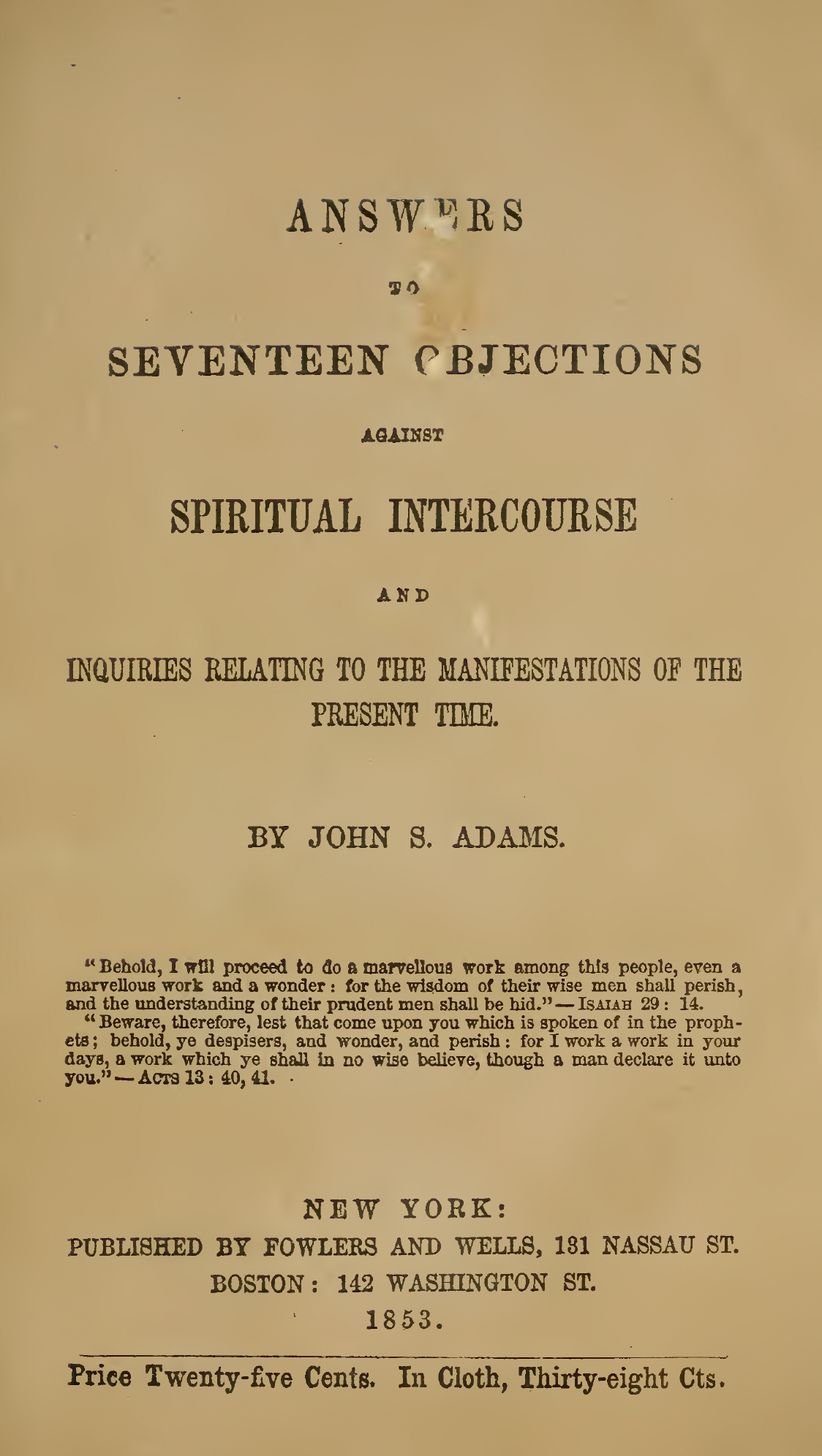 Such strange, incomprehensible doctrines, are given by these manifestations, so different from those I have commonly believed, that I deny their holy origin.
