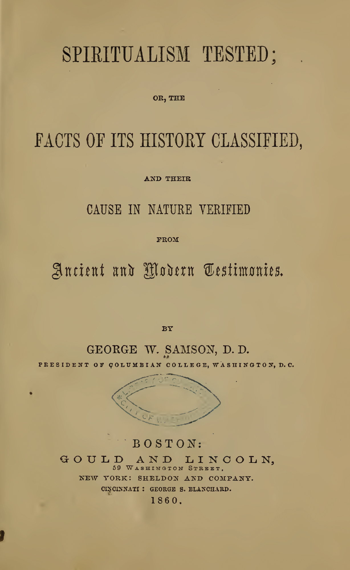 The admission of the reality of the facts of the phenomena called "Spiritual Manifestations" may awaken a prejudice in the minds of one class of readers; while the apparent suggestion of a natural cause for them, may disaffect inquirers of an opposite caste. But, have we not all learned that it is the imperfection of our nature which leads us all to idolize our preconceived opinions, and which makes us deny to ourselves a fair hearing of what seems counter to, or in advance of, our already formed judgments? Will not the reader, of whatever class, grant the credit of sincerity and impartiality professed in the title " Spiritualism Tested;" and allow himself to he, for the time, the friend addressed in these familiar letters?