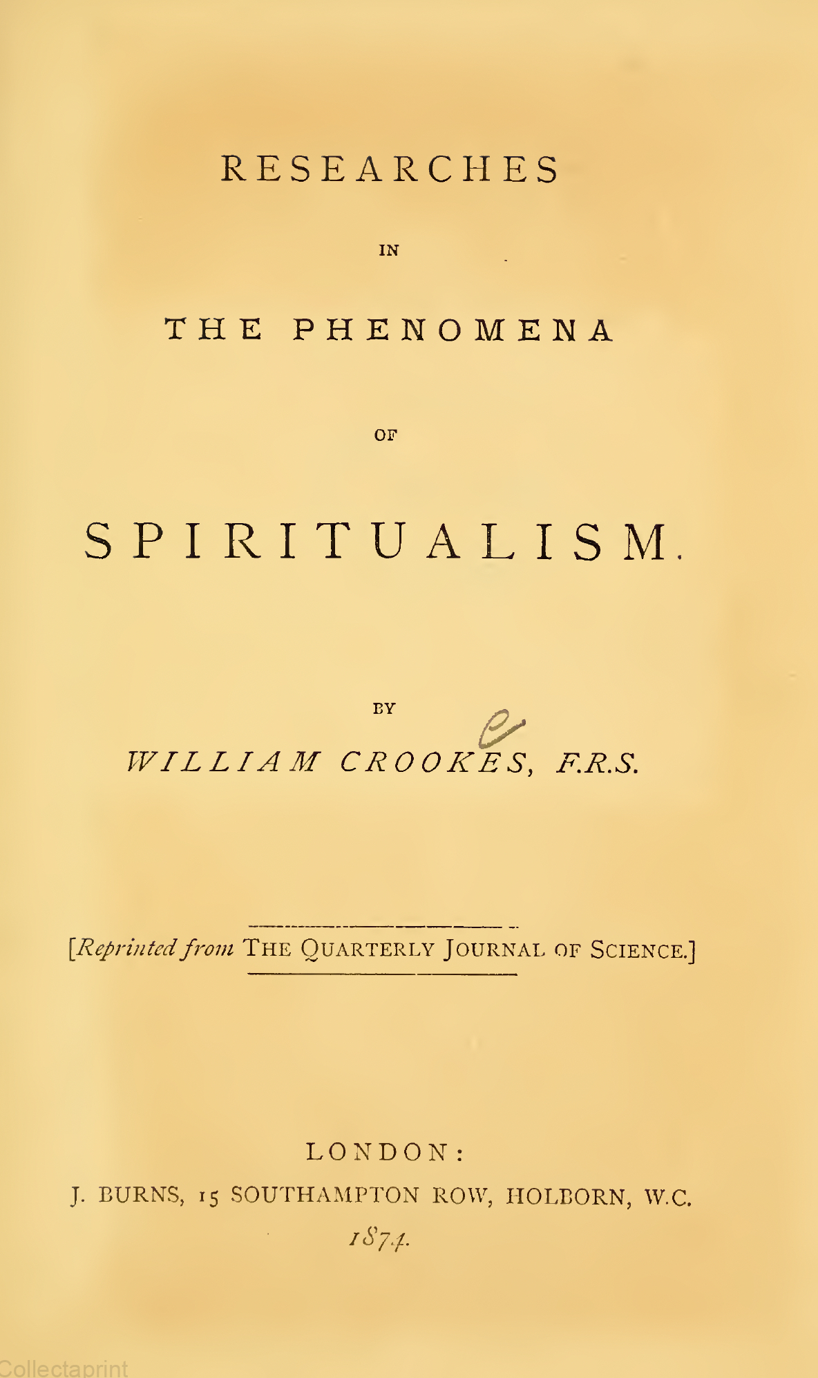 Researches in The Phenomena of Spiritualism by William Crookes, F.R.S.
