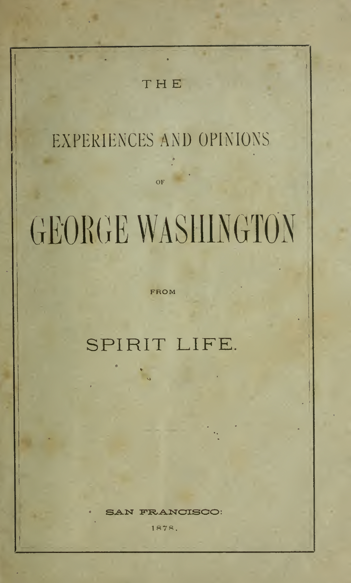 The main contents of this pamphlet were written by Washington, in 1868, using the mediumship of Mrs. M. J. Upham Hendee.