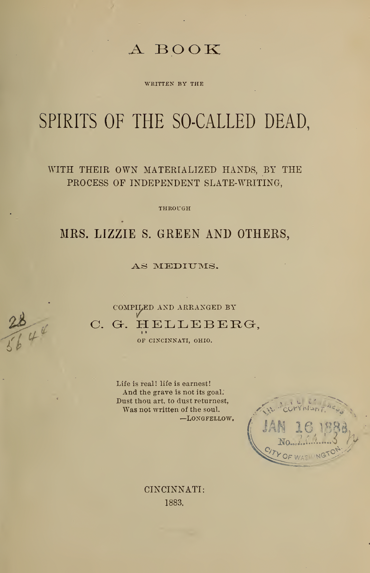 - Investigations with Mrs. Green—Remarkable dark Trumpet Seance, at which I received a most beautiful Flower from my Son Emil and Miss Mary Muth.