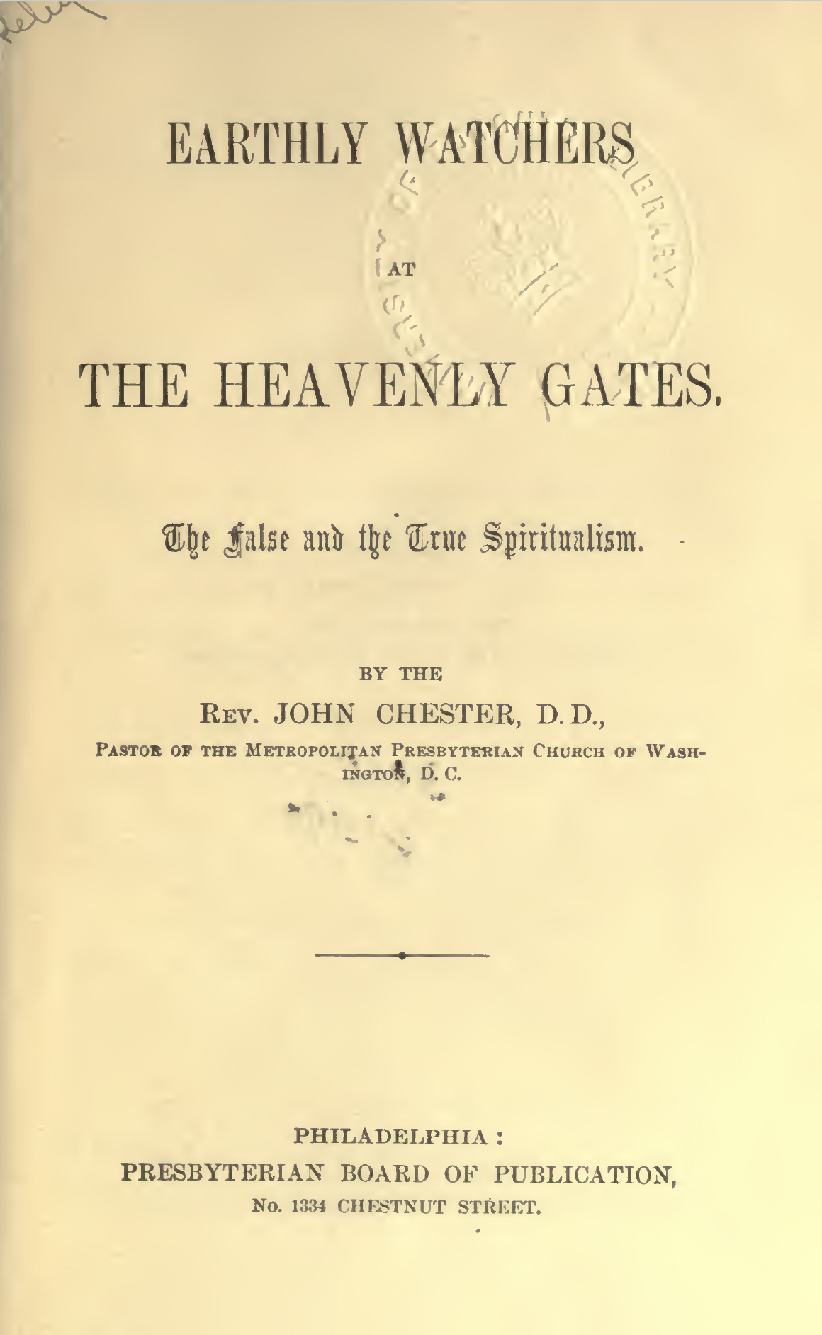There is also a large class of persons who, smarting under bereavement, have had their imagination and sympathies wrought on by the prospect of holding Spiritualistic intercourse with their dead. As a pastor the writer has often felt the need of a book to place in the hands of those inclined to adopt this error. He has therefore written this volume, the aim of which is to show that every proper desire to know about the state of the dead can be abundantly satisfied by the word of God, and that the communion of saints through Christ and the Holy Spirit yields more real soul-comfort than any séance could, even if such a mode of intercourse were possible. A story is interwoven with the discussion of this theme, with the hope that it will thus reach those who might be repelled by a formal doctrinal treatise.