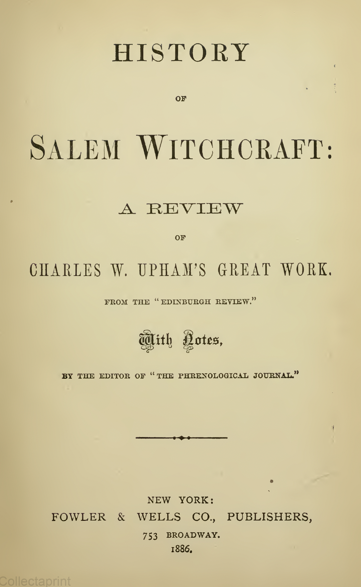The object in reprinting this most interesting review is simply to show the progress made in moral, intellectual, and physical science. The reader will go back with us to a time-not very remote-when nothing was known of Phrenology and Psychology; when men and women were persecuted, and even put to death, through the baldest ignorance and the most pitiable superstition. If we were to go back still farther, to the Holy Wars, we should find cities and nations drenched in human blood through religious bigotry and intolerance. Let us thank God that our lot is cast in a more fortunate age, when the light of revelation, rightly interpreted by the aid of science, points to the source of all knowledge, all truth, all light.
