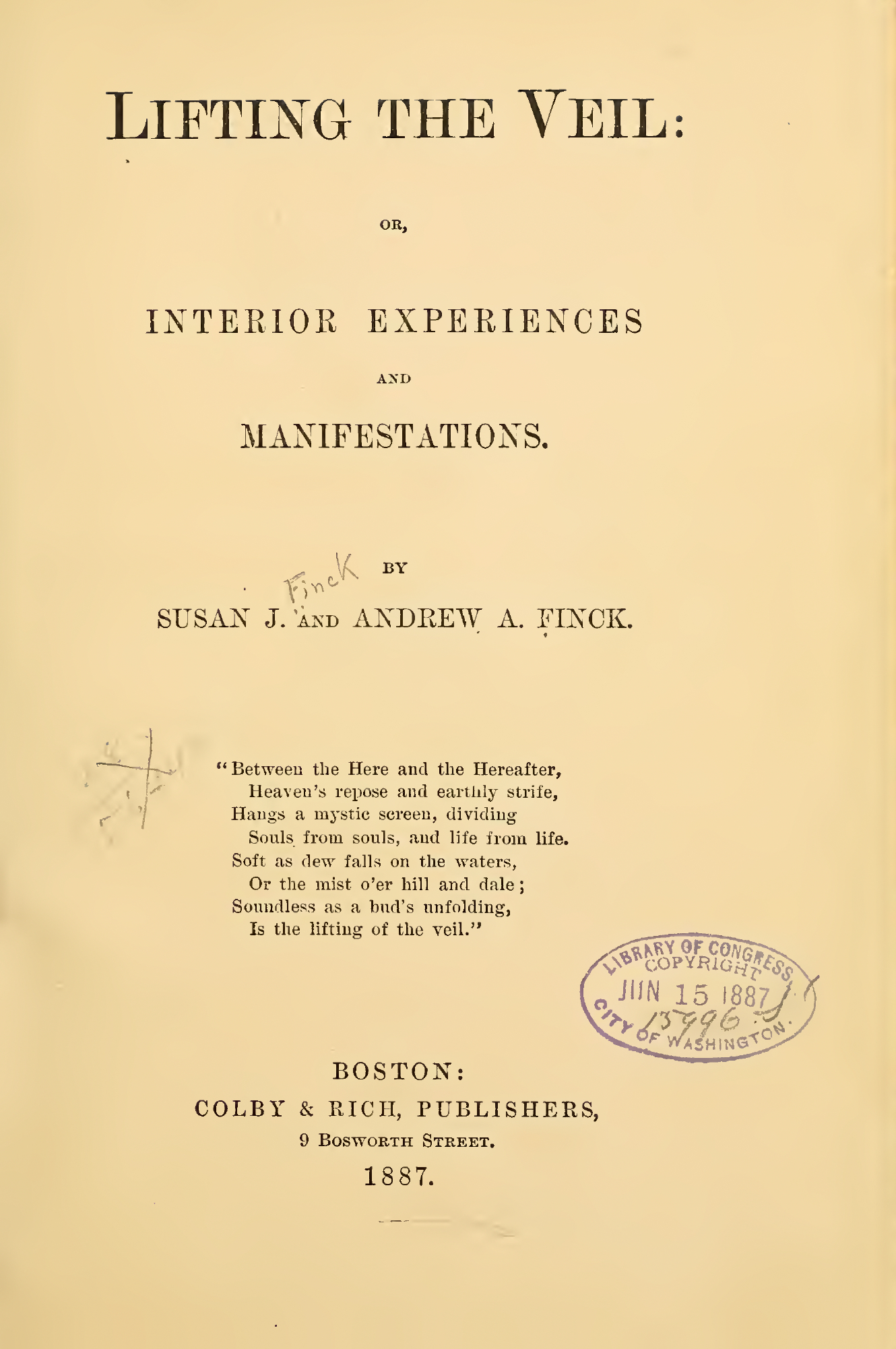 - A Millionaire's Home.—His Message.—Seance with a Gentleman.—The Spiritual Aura.—Experience from "Ghost Land" of Chevalier de B.—Vision of A. J. Davis.