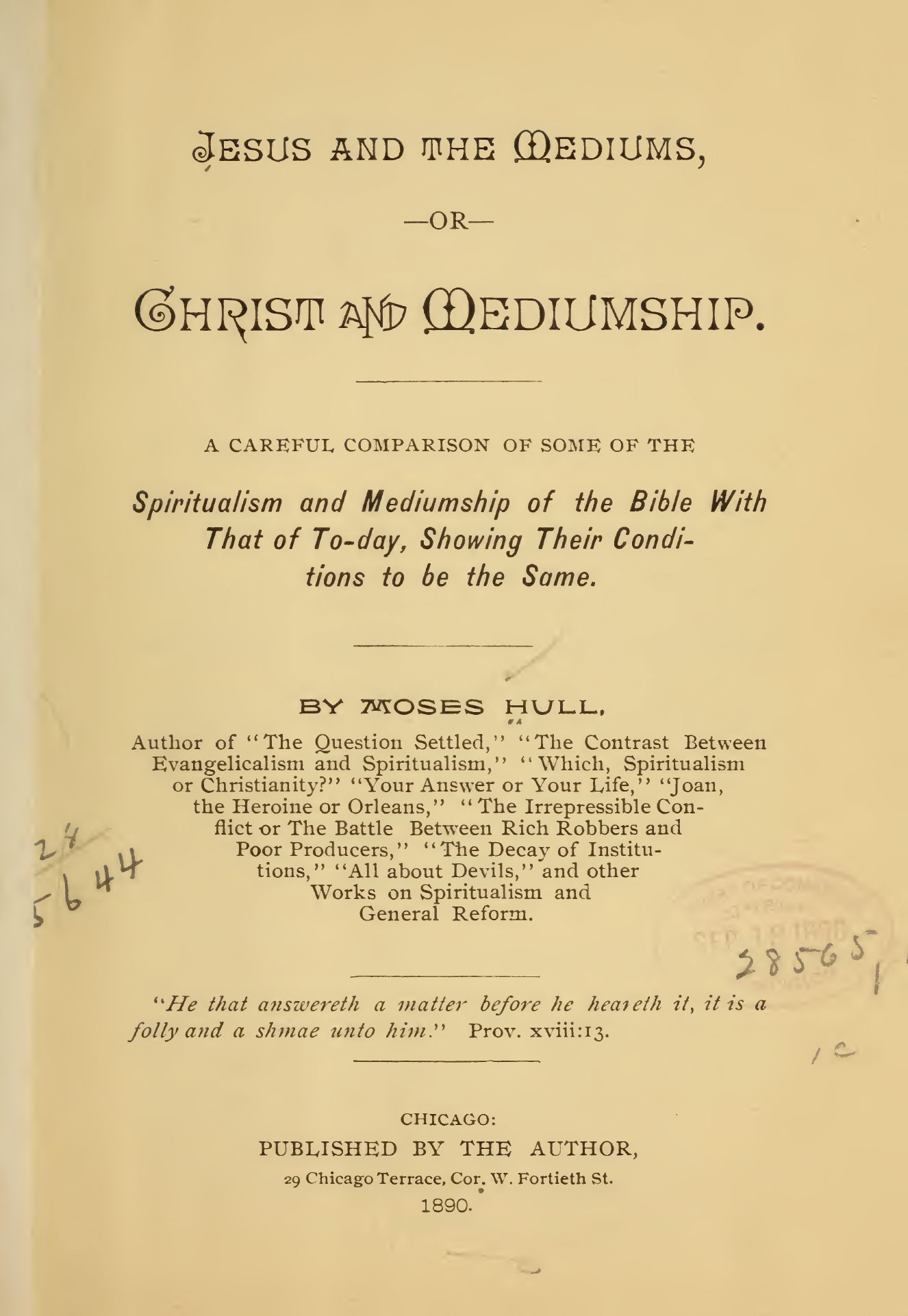 I am fully convinced that Spiritualists generally have ignored the Bible too much. Many have sought to take the Bible from the churches and spike it. In the following pages the Bible, by being proven to be a spiritual book, is not spiked, but is turned against those who supposed that to them belonged the exclusive privilege of interpreting that volume.