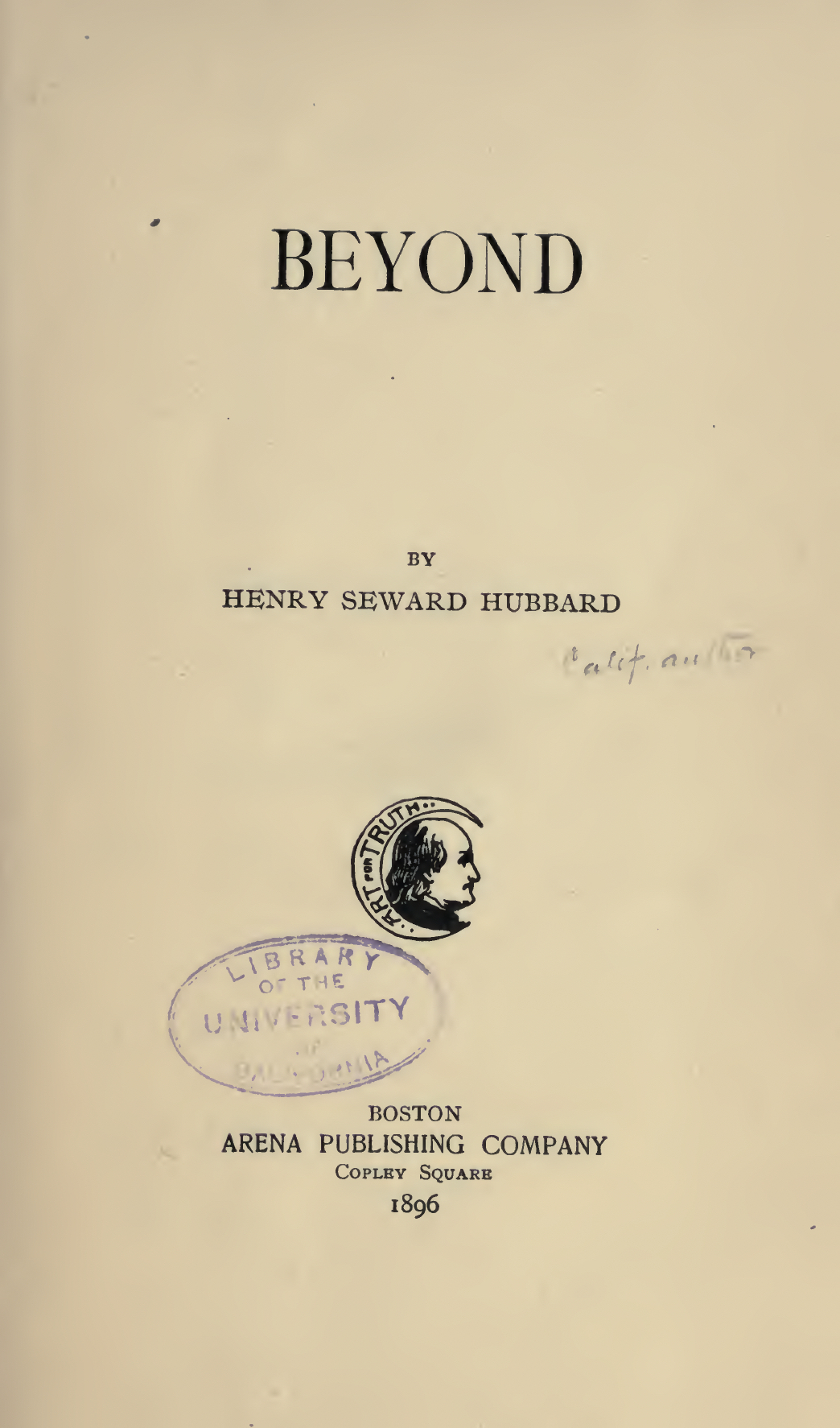A word of explanation in reference to my title may be appropriately given here. By Beyond, I mean what is sometimes called the unseen world, but which might better be called the immaterial world, since that which distinguishes it from the world proper is not merely that it is invisible, but that it cannot be made visible to mortal eyes.