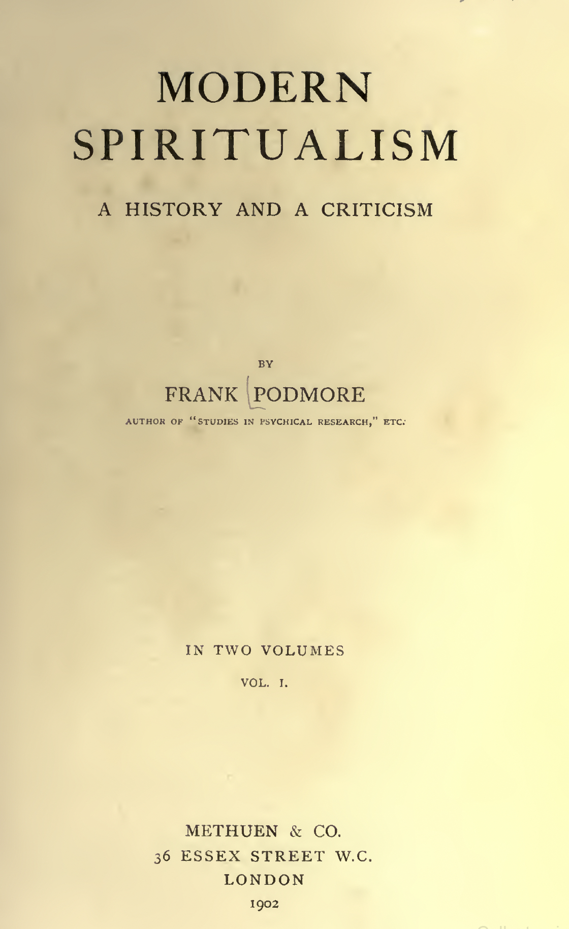 My chief amongst many and weighty obligations for help and counsel given is to Mrs. Henry Sidgwick, who kindly placed at my disposal the material collected for her article in the Encyclopaedia Britannica on "Spiritualism." At a later stage Mrs. Sidgwick read a great part of the following pages in typescript, and gave me many valuable suggestions. To the late Henry Sidgwick I am indebted for some wise counsel in the writing of the earlier part of this work; that I could not submit to his clear judgment some of the delicate questions dealt with in the last Book I regard as an irremediable loss.