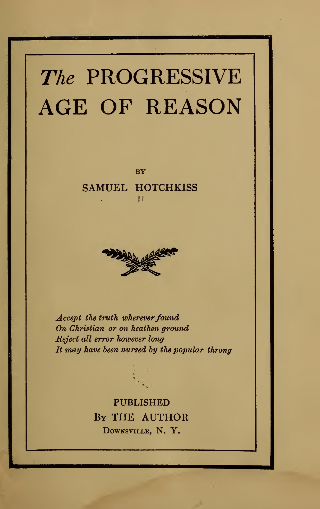 All who may have some misgivings or some doubts in regard to the Scriptural plan of salvation and may consider it a little narrow and that it's foundation, the Bible may not be the "infallible word of God" throughout, and that the original plan (the Papal) and the revised plans (the Protestant) may smack too much of Priestcraft with a slightly mercenary tendency. All such are cordially invited to read this book.