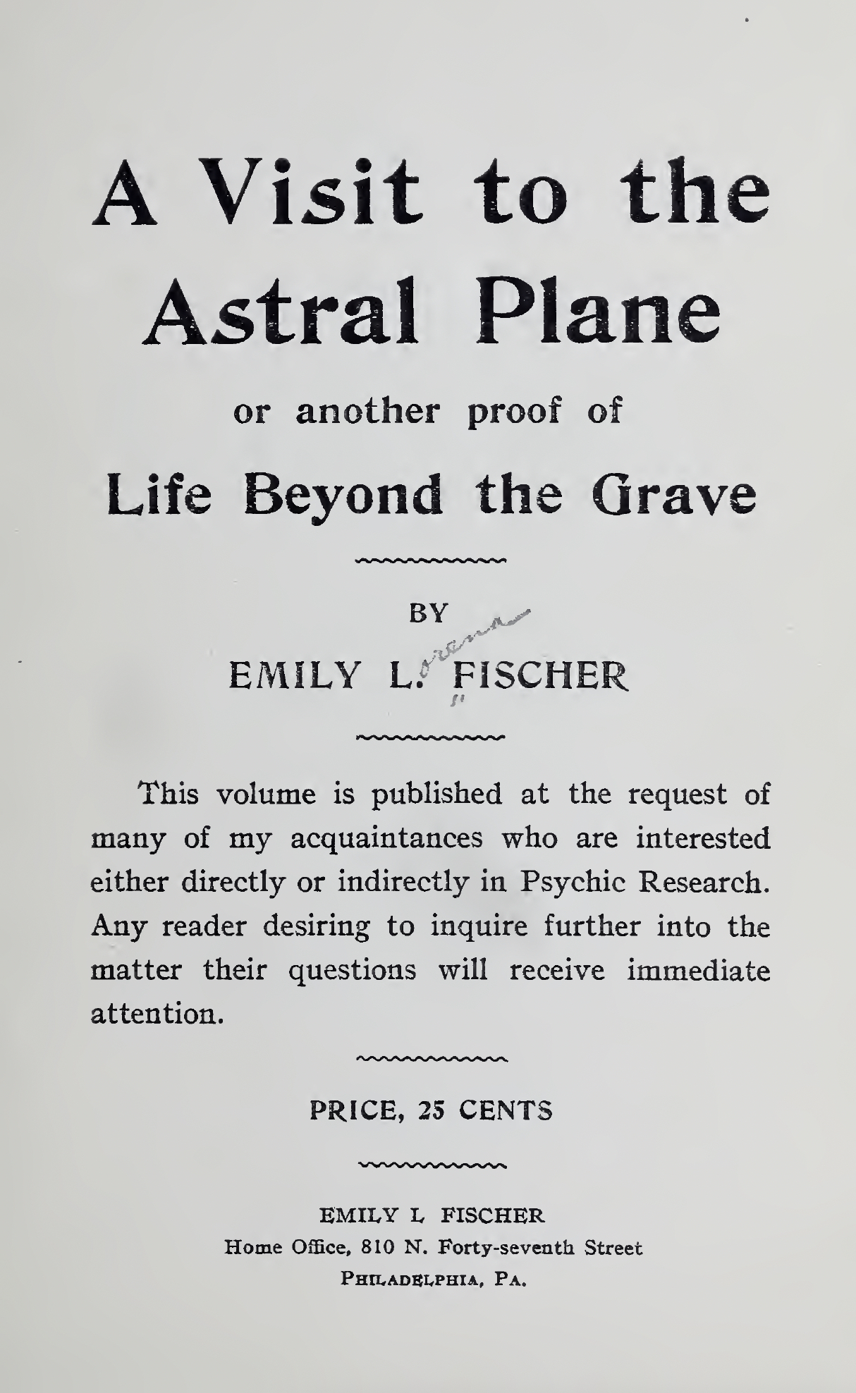 Those of my readers who desire to become Psychics of great note should read, study and live according to the teachings set forth in Heart and Soul Culture, for one must become as a little child in order to visit the Astral Plane.