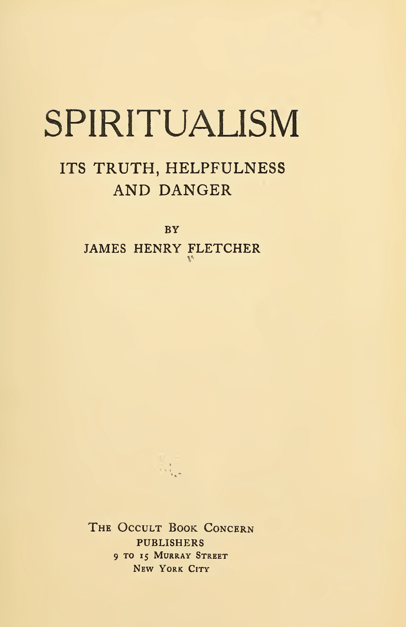 The object of this book is not to convert my readers into Spiritualists, but to call their attention to what my long experience with, and investigation of the subject has proven to me as its Truth, Helpfulness, and Danger.