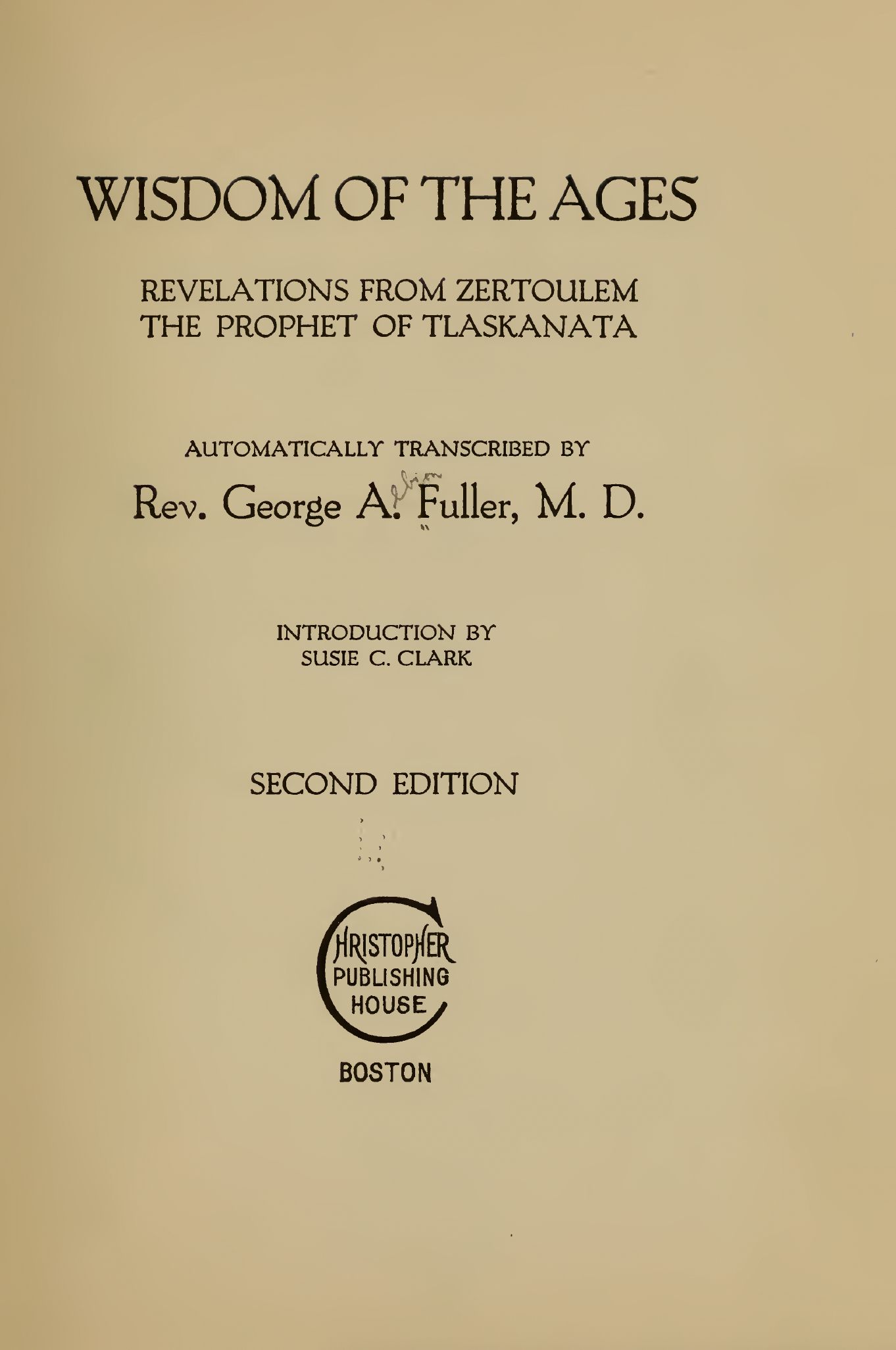 The instrument through whom this grand, unique message has been transmitted—Dr. George A. Fuller—is admirably fitted to be thus chosen as a mouthpiece of wise inspirers, being a man of pure, clean nature, a close student, philosopher and aspirant for Truth, loving honor and integrity better than fame or fortune. He has been for years before the public as a teacher of spiritual truth, constantly under observation when criticism was rife, without a stain or breath of calumny. Some twenty-five years ago, Dr. Fuller possessed to some degree the gift of automatic writing, and at that time received communications purporting to come from an ancient dweller of Central America. But these messages were chiefly historical and personal, and after a time ceased; gradually also the automatic gift was withdrawn, presumably forever, After the lapse of a quarter of a century, however, —