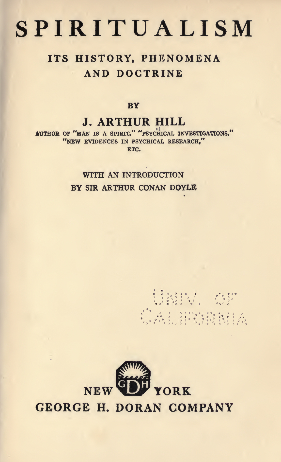 This book has been written in response to suggestion that I should prepare a volume giving a comprehensive answer to the question: "What is Spiritualism?" A large literature of the subject exists, the library of the London Spiritualist Alliance containing about 3,000 volumes; but the aspects are many, the ramifications extensive, and there is no single work that presents a review of the whole, except Mr. Podmore's "Modern Spiritualism" (2 vols., 1902), which, besides being too bulky for any but a determined student, is now regarded by most investigators as being too negative. The progress of psychical research in the last sixteen years has raised into new credibility many narratives which, in those earlier days, a cautious mind could not even provisionally accept.