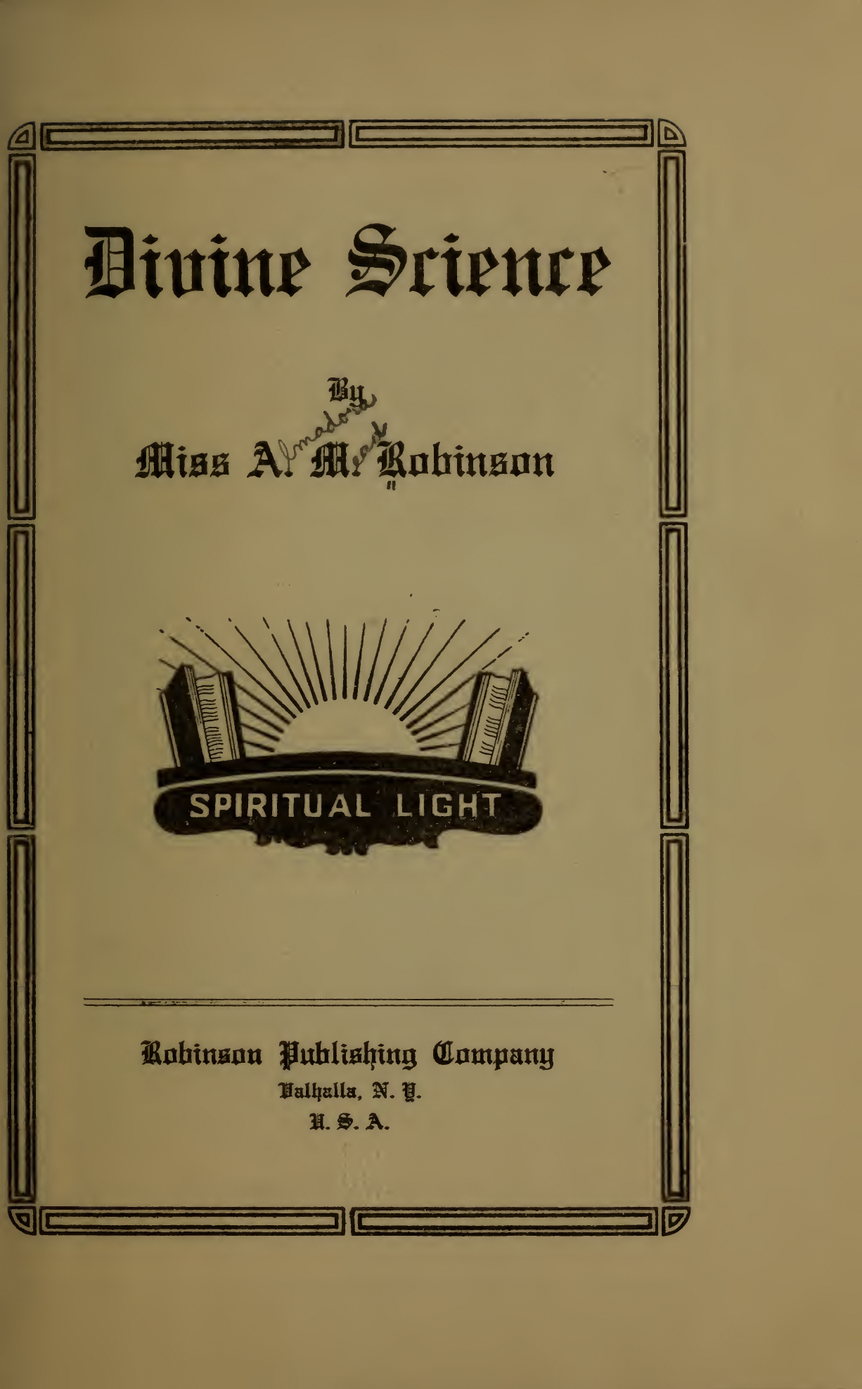 These are the divine and inspired teachings received from the Spirit-of-Truth of the astral world; emanations—inspirational and aspirational—from the great Over-Soul—God—the Infinite Intelligence, or Supreme Power over humanity.