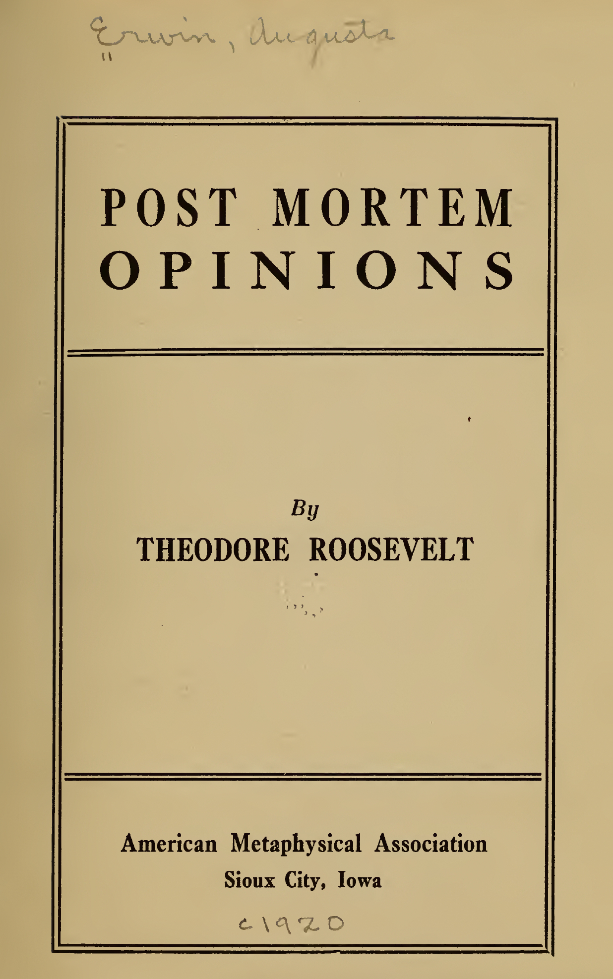 The party who dictated the manuscript of A this volume says he is the late Col. Theodore Roosevelt. The contents of this volume is the only proof we have to offer.